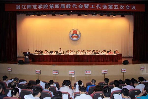 湛师新闻中心讯 4月28-29日,湛江师范学院第四届教代会暨工代会第五次会议在音乐厅举行。学校领导梁英、罗海鸥、刘海涛、彭权群、刘周堂、黄钢、李江凌、邵乐喜、兰艳泽等同志以及十一个代表团代表(正式代表209人,列席代表12人,特邀代表13人)参加了会议。会议由学校党委刘海涛副书记主持。
