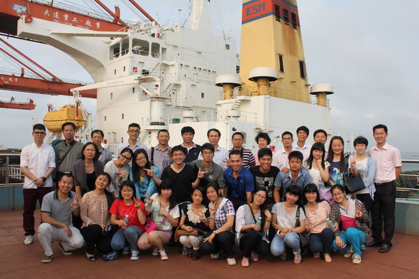 党员们与来自马绍尔群岛的大货轮合影
