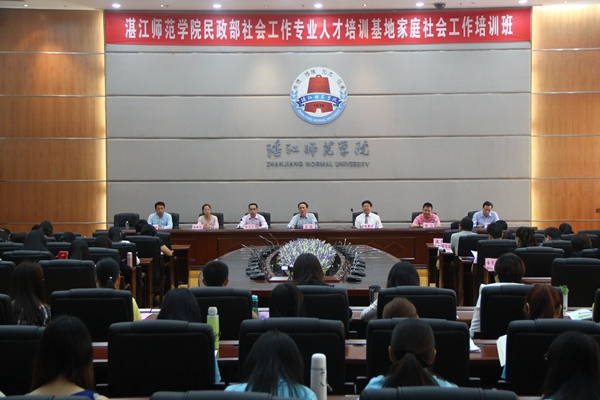 3月31日上午,湛江师范学院民政部社会工作专业人才培训基地家庭社会工作培训班在国际会议厅举行了隆重的开班仪式,我校党委梁英书记出席会议并致欢迎词。台湾社工界著名学者、台湾东海大学简春安教授、团市委副书记郑克芬、扬州大学社会发展学院党委书记刘鹏展以及湛江市社工委、妇联代表,来自全国各地高校、社工机构、市政机关、女村干部等近70名学员出席了开班仪式,会议由法政学院院长袁铎主持。