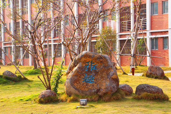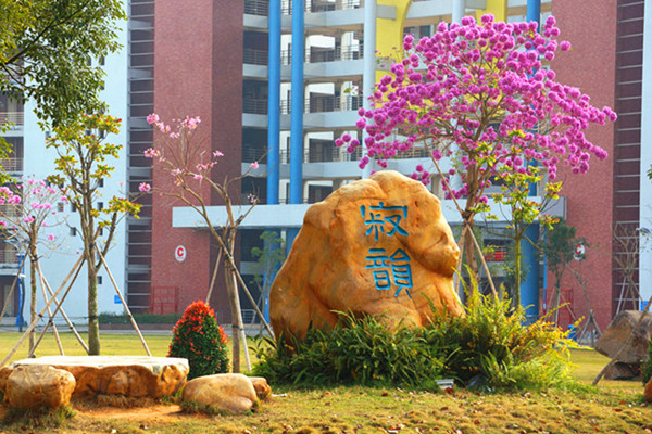 近两年来,学校为了进一步加强校园景观文化对师生的熏陶,在校园不同的景点布设了各种形状的景观石。校园景观石刻字从集古人碑贴、墨迹,到用近现代名家大师手迹,再到邀请名人书写,别出心裁又颇具文化内涵。如“雅趣”、“寂韵”等石刻集自魏碑和汉隶;“博雅显气象”、“寂寞见独体”等集自东晋王羲之墨迹;“无负今日”、“爱与美”、“百年树人”等分别镌刻了梁启超、沈尹默、沙孟海等近现代名家大师手迹。