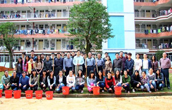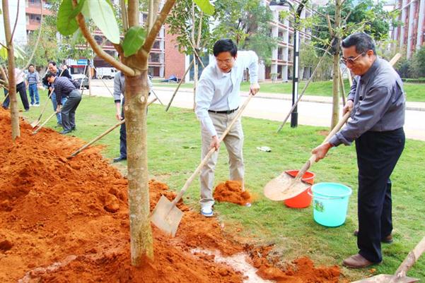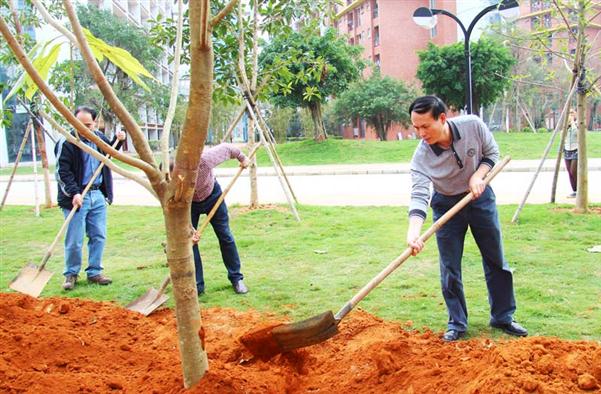 春回大地,万物吐新,一年一度的植树节又到了。为引导广大师生爱绿护绿,共建生态优美、人文彰明的湛师校园,3月12日下午,学校梁英书记、罗海鸥院长带领其他校领导、职能部门、二级学院代表以及160多名学生,来到弘志苑、新民苑、明德苑、至善苑及周边道路等植树点培土植树。