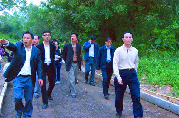 梁英书记在考察共建生态植物园建设