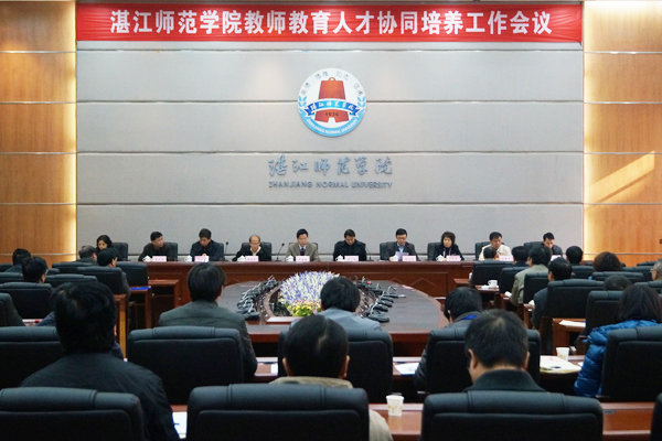 湛师新闻中心讯 12月27日上午,学校在国际会议厅组织召开了教师教育人才协同培养工作会议。来自我省湛江市、茂名市、阳江市和广西北海市四市的教育局领导,学校61所“人才培养合作共同体单位”、“半岛湾区研修基地”学校负责人,雷州半岛、北部湾地区政府部门代表等近百人齐聚我校、交流经验,共同推进教师教育人才协同培养工作。学校罗海鸥院长、李江凌副院长、邵乐喜副院长、兰艳泽总会计师以及各相关部门负责人、二级学院院长及分管教学副院长等参加了会议。会议由李江凌副院长主持。