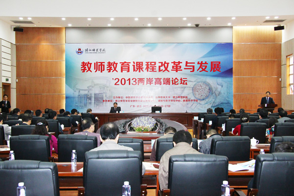 湛师新闻中心讯 11月26-27日,“教师教育课程改革与发展” 两岸高端论坛在我校举行。这次论坛由中国教育学会教育学分会、湛江师范学院和台中教育大学联合主办。来自台湾师范大学、台湾屏东教育大学、台中教育大学,北京大学、北京师范大学、华东师范大学、湖南师范大学、浙江师范大学,广东教育研究院,高等教育出版社、人民教育出版社、广东高等教育出版社等多所高校和不同单位的两岸近70位专家教授参加了论坛。