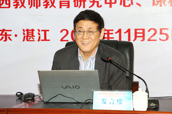 在论坛开展的三场主题发言中,共有12位专家教授作学术报告。台湾师范大学吴武典教授以湛台高校合作模式为例,介绍两岸协同培育特殊教育师资的职前教育课程规划与发展;华东师范大学丁钢教授从高等师范院校师范生培育状况的调查出发,提出了师范生教育的课程结构及毕业生需要提高的能力和社会定位;北京师范大学石中英教授着重分析了教师的同情心及其培育;浙江师范大学眭依凡教授也就自己的见解提出了关于教师教育课程改革的思考;北京大学陈向明教授做了实践性知识研究对教师教育课程改革的启示;云南师范大学王凌教授做了贫困民族地区学校教育可持续发展的理论和实践探索问题;台湾学者何慧群、高新建两位教授从教育工具技术、课程联接方面提出了对教师教育课程思考;湖南师范大学张传遂教授则做了培养“五会型”教师课程设计的思考;在课程实践层面,广东技术师范学院院长王乐夫教授介绍了该校在高素质“双师型”职教师资的培养与培训方面的探索与实践。我校教务处处长程可拉教授作了“加快培养体系改革,打造未来优质师资——基于合作共同体的人才培养模式创新”报告。