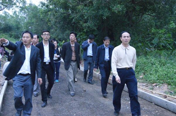 会议结束后,梁英书记一行与生科院党政班子成员同赴实验基地及寸金桥公园生态植物园所在区域进行实地考察。梁书记仔细查看了植物园所在地的地势、土质等情况,并不时提出建议,最后殷切希望生科院做好区域建设规划,有计划地开展建设工作,以园带园持续发展。