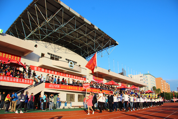 本届运动会将为期两天,规模盛大。衷心预祝体育健儿们赛出好成绩,并用他们的飒爽英姿和青春活力诠释湛师人的勃勃生机和阳刚有为、追求卓越的豪情,展示学校良好的精神风貌和体育风采。