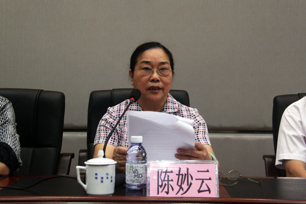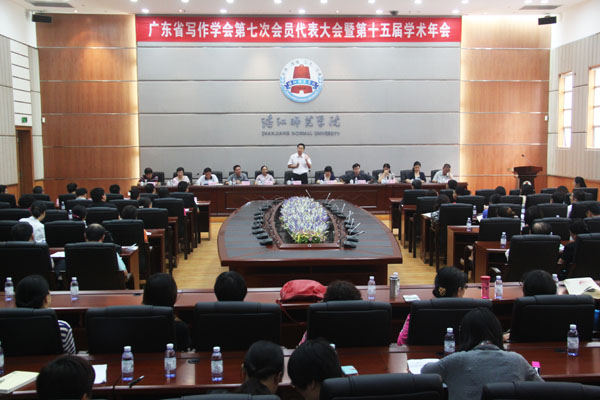 陈妙云会长发言,她首先感谢省社科联、湛江师院及全体会员对写作学会工作的支持,并介绍了本次大会的四个流程:2008-2013年学会工作的总结、学术研讨和科研概况的汇报、会议章程的修改以及第七届理事会和常务理事会的选举。她希望新一届理事会成员着眼于学会的全局和未来,认真行使会员权利,履行会员义务,推进写作学会的各项工作。古岭新副会长代表第六届常务理事会做了工作报告,他用“齐心、调动、发扬、创新、开源”五个关键词概括了广东省写作学会五年来的工作情况。李卫东秘书长对章程修改进行说明,并通报第六届理事会的财务情况,全体会员举手表决通过了上述各项议题的报告和说明。