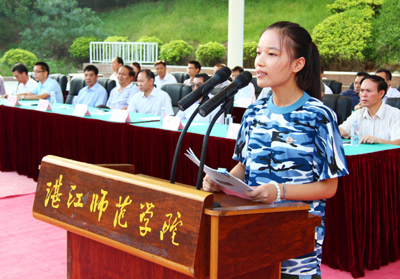 2013级新生代表张梦婷同学情感真挚地讲述了进入美丽校园的初印象和欣喜心情,并立志要在湛师这个百年学府里一路收获,学会认知、做人、做事。