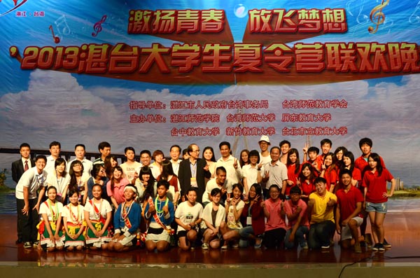 本次夏令营活动精彩纷呈,期间,为创建海峡两岸高等教育交流平台,凝聚海峡两岸学人智慧,在6月30日先举行了“教授治学与大学治理”的两岸教育高端论坛,海峡两岸高等教育名家潘懋元先生、吴清基先生、张应强理事长等出席;为推进增进海峡两岸学子情谊,共同促进海峡两岸大学生成长,1日下午由吴清基总校长在图书馆学书报告厅作了“优质学校教育的理念与实践”为主题的学术报告,与此同时湛台两地高校学生在国际会议厅举行了以“实践·创新与能力发展”为主题的两岸大学生论坛,1日晚上两岸大学生举办了以“激扬青春 放飞梦想”为主题的联欢晚会,2日下午在体操馆由我校体科院学生进行醒狮、武术表演、健美操等多项趣味表演,引来台湾学子的阵阵赞叹。