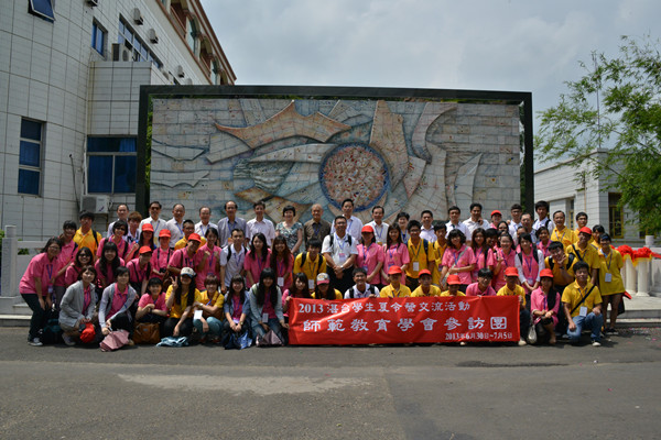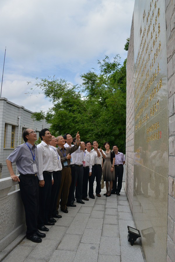 台湾师生和嘉宾在新落成的陶壁《问渠》前合影留念