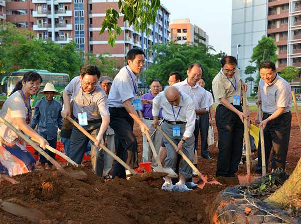 论坛闭幕后,在罗海鸥院长的提议下,93岁高龄的潘懋元先生及与会专家参加了植树活动,在新区种下一棵香樟树以示纪念。