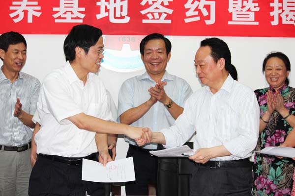 签约仪式结束后,两校领导在榕楼前共同为本基地揭牌。