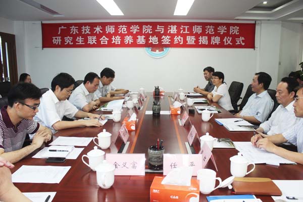 湛师新闻中心讯 24日上午,我校与广东技术师范学院举行研究生联合培养基地签约及揭牌仪式。广东技术师范学院党委陈韶书记、王乐夫院长、许玲副院长以及研究生处、教育学院相关领导,我校党委梁英书记、罗海鸥院长、邵乐喜副院长,党委办、院长办、科研处、教科院等单位主要负责人以及研究生指导教师出席了仪式。仪式由邵乐喜副院长主持。
