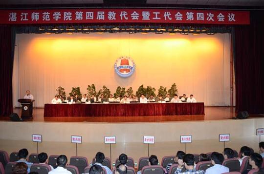 湛师新闻网5月4日讯 5月2日至3日,湛江师院第四届教代会暨工代会第四次会议在音乐厅举行。学校领导梁英书记、罗海鸥院长、刘海涛副书记、黄钢副书记、刘周堂副院长、李江凌副院长、邵乐喜副院长,关工委郑永辉主任以及十一个代表团(正式代表211人,列席代表13人,特邀代表12人)参加了会议。会议由校党委刘海涛副书记主持。