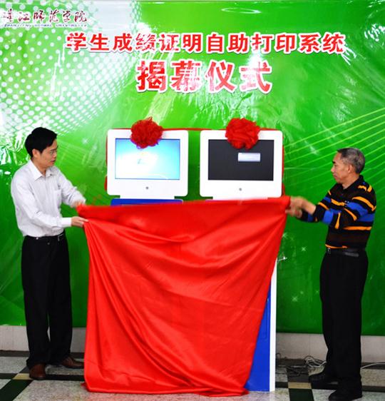 湛师新闻网4月24日讯昨天下午,我校学生成绩证明自助打印系统揭幕仪式在图书馆举行。校领导罗海鸥院长、刘周堂副院长出席了揭幕仪式,教务处、院长办公室、学生处、团委、教科院等部门负责人及学生代表参加了活动。仪式由教务处程可拉处长主持。