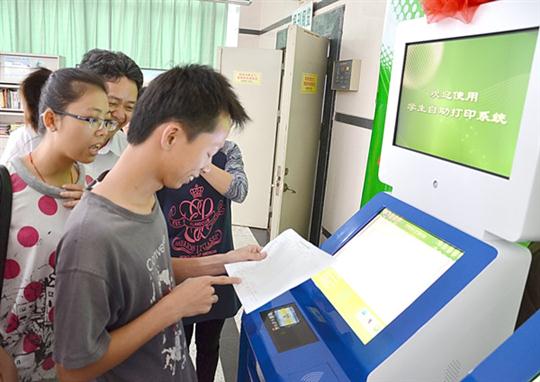 据教务处相关人员介绍,安装成绩证明自助打印系统是学校2012年为师生员工办实事项目之一,是由教务处负责筹划和组织落实。自助打印系统集查询、缴费、打印功能于一体,通过自助打印终端可以24小时为同学们打印出学习成绩单、在学证明、毕业证明和学位证明等。自助打印系统自4月8日试运行以来,已免费打印了三千多份成绩证明,得到了同学们的广泛好评。
