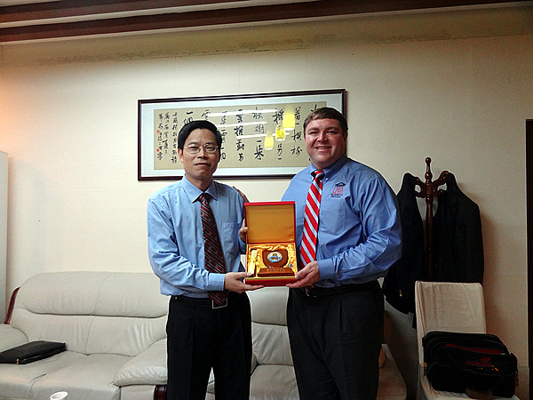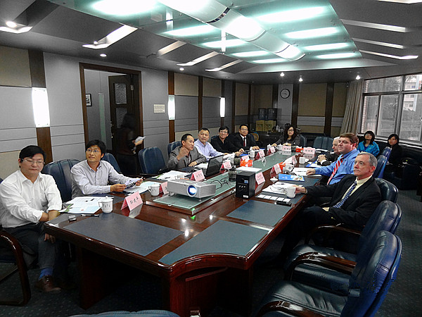 湛师新闻网3月15日讯 12日,美国西阿拉巴马州立大学代表团来校进行友好访问,与我校商谈合作事宜。学校领导罗海鸥院长在国交处邓逢光处长和郑志军副处长的陪同下在园府酒店与客人进行了简短的交谈,初步达成了两校间的合作意向。随后双方交换了纪念品。