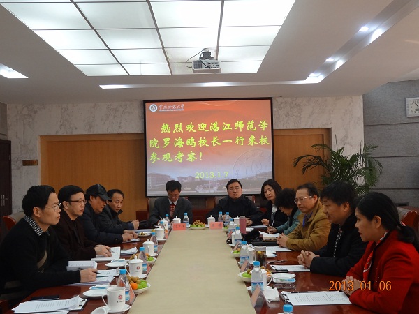 1月7日上午,罗院长一行到达重庆师范大学,在周泽扬校长的引领下,参观了校园环境、校友会堂、校史室、音乐厅和图书馆。幽静美丽的校园和突出人文气息的设施给我们留下深刻的印象。随后,主客双方举行了座谈会,座谈由重庆师大党委龚燕副书记主持,相关部门领导了参加座谈会。会上周泽扬校长致欢迎辞并介绍了重庆师大发展历程、办学理念及改革经验。特别是以职业师资和汉语国际教育为侧重点的错位发展策略使重师大在发展中脱颖而出,办学层次、办学声誉和效益有质的提升。罗海鸥院长在会上也介绍了我校改革发展情况。大会后,两校对口部门分组进一步进行了经验交流。