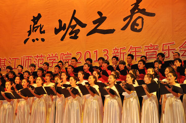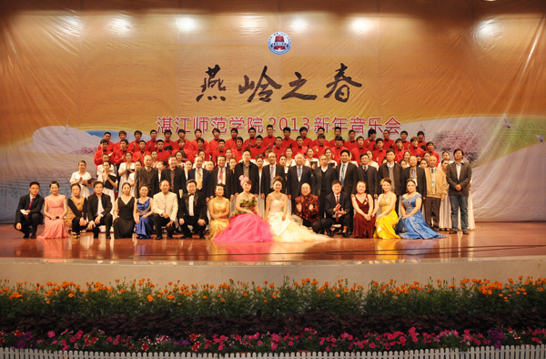 湛师新闻网12月27日讯 昨晚,为了迎接第三届海峡两岸教师教育高端论坛各位专家学者的到来,我校在音乐厅隆重举行“燕岭之春”2013新年音乐会,此次音乐会由音乐学院承办。台中教育大学杨思伟校长、台湾师范大学吴武典教授、新疆师范大学周作宇副校长等来自两岸30多家高校及教育科研单位的专家学者,湛江市委台湾事务办公室主任黄昌旺先生,我校罗海鸥院长,刘周堂、李江凌、邵乐喜副院长,以及师生代表400余人出席了演出。