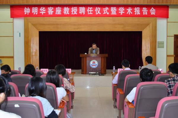 湛师新闻网11月23日讯 21日上午,中山大学社会科学教育学院钟明华院长客座教授授聘仪式暨学术报告会在图书馆学术报告厅举行。校领导罗海鸥院长,法政学院冯亮如书记、思政部何增光主任、思政系和管理系部分老师以及思政专业学生参加了授聘仪式及学术报告会。