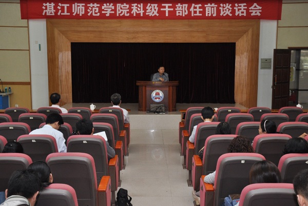 湛师新闻网11月1日讯 昨日下午,我校在图书馆学术报告厅召开科级干部任前谈话会。校党委副书记、纪委书记黄钢,党委组织部部长彭权群,纪委副书记冯汝智,以及学校新一届聘任的全体科级干部参加了会议。会议由黄钢副书记主持。