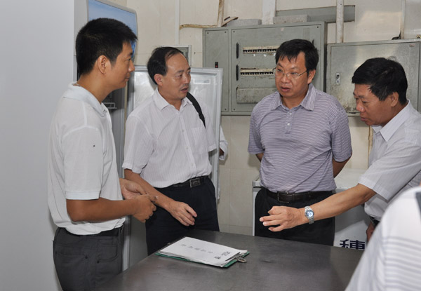 湖南教工委维稳办罗爱国主任一行来到鸿园饭堂,首先对大堂的秩序、卫生情况进行察看,并随机询问了就餐的学生对于饭菜的满意度。随后对饭堂的食品仓、蒸餐间、烹饪间和消毒间进行逐一检查,并对排烟系统与消防、冷冻设备进行了解。此外,检查组还仔细查看了饭堂食品采购索证、进货帐单等情况,了解具体的食品采购过程,确保从源头保证食品的安全。检查组对饭堂的卫生、秩序、食品加工操作流程等方面给予肯定。