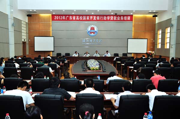湛师新闻网9月29日讯 27日,广东省高校国家开发银行助学贷款业务培训工作会议在我校综合楼国际会议厅隆重召开。广东省教育厅李学明副厅长、我校罗海鸥院长,教育厅助学管理中心傅湘龙主任、王红松科长,国家开发银行总行方宽、范明志经理,国家开发银行广东省分行徐晶经理出席了本次会议。会议由傅湘龙主任主持,参加会议的还有部分高校助学贷款省级管理小组人员以及各高校新进贷款经办人员等约100人。
