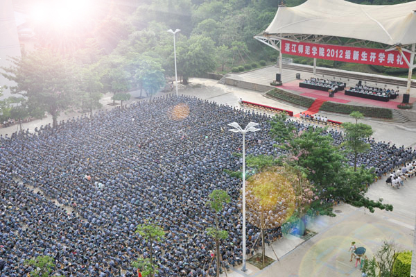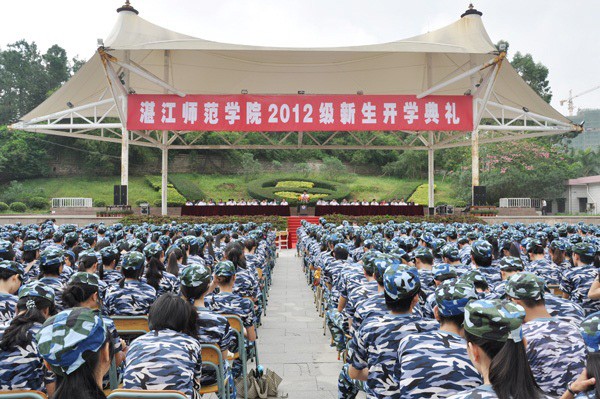 湛师新闻网9月11日讯 昨日上午,我校在雷阳广场举行了2012级新生开学典礼。校领导梁英、罗海鸥、刘海涛、黄钢、李永全、李江凌,党委办公室、院长办公室、组织部、宣传部、学生工作部、武装部、教务处、继续教育学院、招生与就业处、团委、通识教育中心和图书馆的主要负责人,各二级学院、思政部及基础教育学院党政主要负责人,教师代表,各二级学院党委副书记、辅导员,2012级校本部普通本科生、专升本插班生、开放学院新生及基础教育学院南校区普通生参加了典礼。开学典礼仪式由李江凌副院长主持。