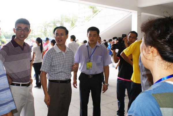 湛师新闻网9月9日讯 百年学府喜迎新,燕岭雷阳喜欢腾。昨日上午,我校迎来了5300多名2012级新生。校党委梁英书记在党委办黄达海主任、学生处李粤处长等的陪同下到迎新接待现场察看指导工作。