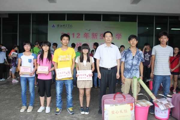 贫困新生资助帮扶维系教育公平,是校领导一直高度重视和关注工作,今年学校启动了“情暖湛师”2012级家庭贫困新生资助工程,投入三十万专项经费,多举措帮扶贫困新生。在绿色通道现场,罗海鸥院长、朱承平总经理和李江凌副院长等领导亲手为贫困生代表发放了500元的“生活补助金”、 “爱心礼包”和 “晨光”工程“真情卡”,尽显校领导的温情人文关怀和企业家热心支持教育事业的情怀。