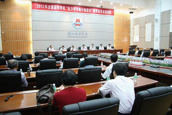 湛师新闻网9月2日讯 受“教育部高等学校物理学与天文学教学指导委员会”的委托,高等学校《热力学与统计物理学》教学及学术研讨会于2012年7月26~30日在我校隆重举行,会议由高等学校《热力学与统计物理学》教学研究会主办,湛江师范学院承办、广东省物理学会协办,来自全国25所高等院校的46名代表参加了会议。我校副院长邵乐喜教授主持了开幕式,我校院长罗海鸥教授参加了开幕式并致欢迎辞。研究会理事长内蒙古大学梁希侠教授在开幕式讲话。研究会副理事长、中国科学院院士南京大学邢定钰教授、浙江大学郑波教授等12人就《热力学与统计物理》课程建设、教学改革及相关科学研究方面的专题做了报告。物理学院领导参加了开幕式,部分专业教师参加了研讨会。