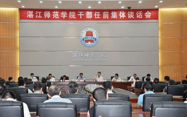 湛师新闻网7月12日讯 7月10日上午,我校在国际会议厅举行副处级干部任前集体谈话会。参加谈话会的有:校领导梁英、罗海鸥、刘海涛、黄钢、李永全、刘周堂、李江凌、邵乐喜,有关部门负责人,新一届副处级领导干部及退出领导岗位的副处级干部。谈话会由党委副书记黄钢主持。