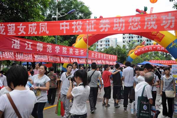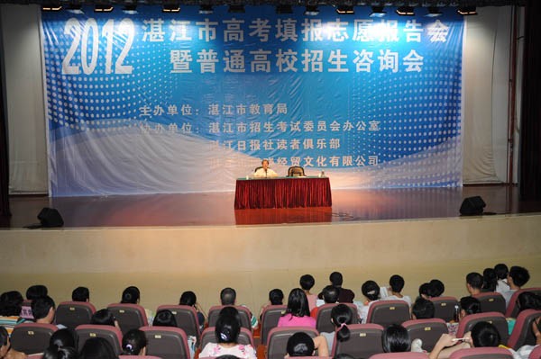 湛师新闻网6月24日讯 昨日,湛江市招生考试中心在我校举行了为期半天的湛江市2012年普通高考招生咨询会。今年共有来自全国包括武汉大学、暨南大学、华南师范大学、汕头大学在内的150多所高校在我校“摆摊”,方便广大考生与家长进行面对面的交流,进一步了解到各所高校的招生信息,为填报志愿做好准备。