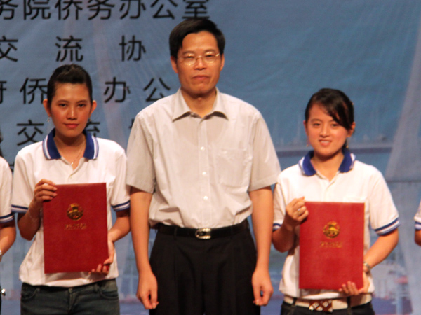 接下来由我校罗海鸥校长为45名印尼山口洋学员颁发结业证书。学员代表张晓丽噙着泪水发言,她表达了由衷的感谢以及不舍之情,21天的学习、生活,学员不仅学到了更多的知识,也和湛师的师生结下了深厚的情谊。这是华文学习之班也是友谊关爱之班。她一口流利标准的普通话赢得了大家的掌声。