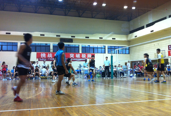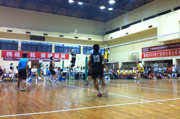 在以往的比赛中在对阵华师和广体比赛时我们不具备任何优势。但今年男排的表现让对手不敢小视,在比赛中全程使用主力队员和我校较量。特别在对冠军队华南师大的比赛中,第二局我校曾以24比22领先,让对方惊出一身冷汗。