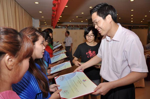 接着,罗海鸥院长为泰国、韩国、越南留学生颁发结业证书。