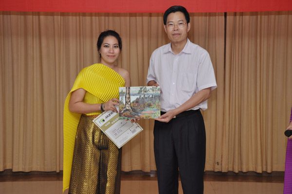 在典礼上,还有泰国、韩国、越南留学生精心准备泰国的传统舞蹈、泰拳舞、合唱《国王之歌》表演等。最后,典礼随着学校领导与留学们与互赠礼物落下帷幕。