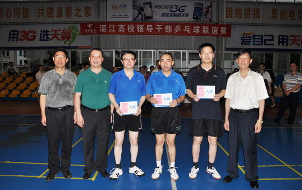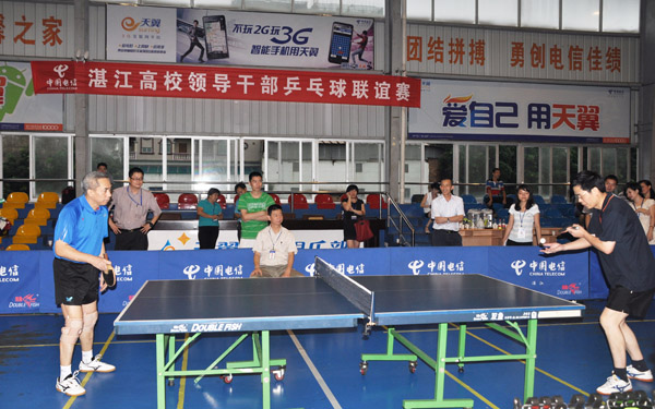 湛师新闻网5月31日讯 昨天下午,由中国电信湛江分公司主办的湛江高校领导干部乒乓球联谊赛在其员工活动中心举行。我校及广东医学院、广东海洋大学、中国电信湛江分公司四支代表队参加了本次赛事。