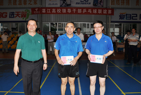 比赛分单、双打项目。我校领导罗海鸥、刘海涛、李永全、刘周堂、李江凌组队代表我校参加比赛,并一举包揽单打前三名,并夺得双打冠军,喜获佳绩。