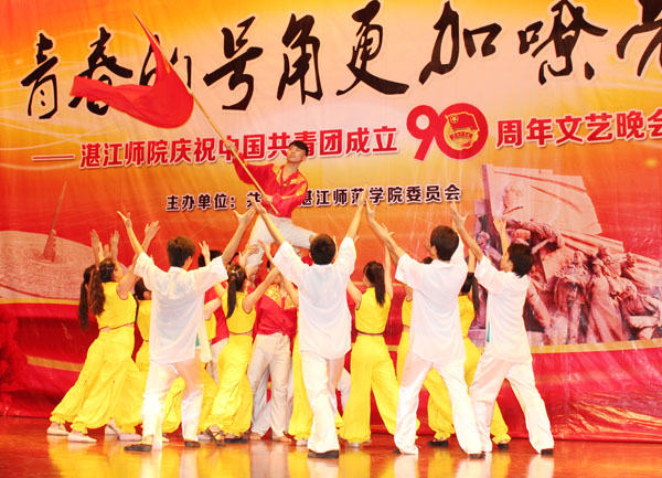 五月花海簇拥,人才辈出;五月群星炫耀,雷阳轰动。精彩的文艺表演将大会推向另一高潮。舞蹈《八女投江》悲壮撼动,演绎出了优秀中国青年的坚毅与不屈;《龙的传人》唱出了我们华夏子孙生生不息的豪情壮语;带有浓郁民族特色的大型舞蹈《佤山火》以激情的舞姿震撼全场,彰显了我国文化的博大精深。一个个精彩节目博得会场阵阵如雷般的掌声。