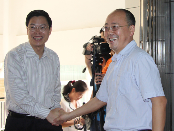 罗海鸥院长欢迎梁志鹏副市长(右)来校指导画展