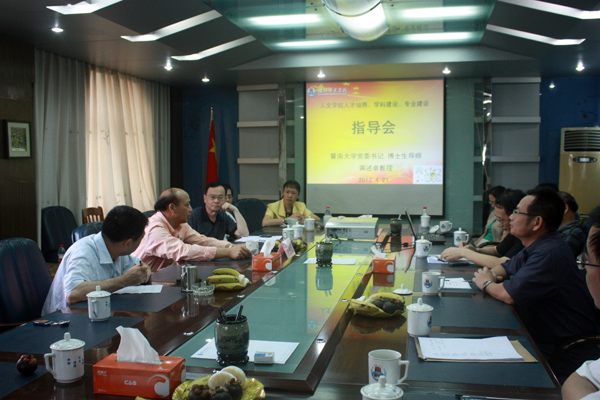 会议上,蒋述卓教授充分肯定了我校悠久的历史和在师范类学校中的地位。接着,他从“人才培养”“学科建设”“专业建设”三方面与大家进行经验交流和指导。蒋教授与大家分享了暨南大学申报“文艺学”“语言学”“古代文学”以及“海外华文文学”等四个重点学科过程,并指出“人才培养”、“学科建设”、“专业建设”在我校人文学院发展中是重要的,也是不可以分割的三方面。