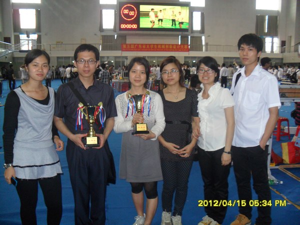 此次是我校首次参加全国大学生机械创新设计大赛,赛前物理科学与技术学院和机电工程系领导高度重视该比赛,早于2011年9月底就开始宣传发动工作,经过半年多的准备,先后组成12支参赛队伍参加本届比赛。比赛经过初赛、专家评审、现场答辩等环节,最终我校两项创新设计进入决赛,分别是:“绿源环保消毒器”(弓满锋博士、李忠博士指导,陈木凤、梁倩婷、张丽微、易琰、李翠桂同学制作)和“智能婴儿摇篮床”(韩英莉博士、隋广洲老师指导,赖文卓、丘小龙、冯显舒,黄海兰同学制作)。