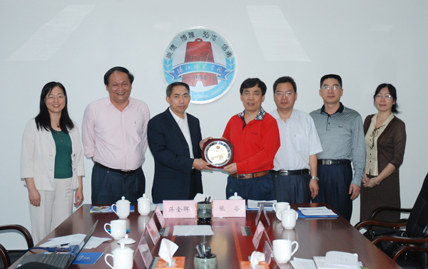 随后,广东海洋大学叶春海副校长表示,此次到访是为学习和借鉴我校人才培养、教学管理以及公共体育课改革的成功经验。他提到,海大作为以海洋水产特色的高校,2007年提出了“能安心,能吃苦,能创业”的三能人才培养目标,并全面修订教学计划,针对毕业生就业趋向等问题逐步改革了人才培养模式。同时他指出,在科学研究方面,从前年开始实施了“双百工程”,一方面是培养科学研究方面人才,另一方面是培养行政方面人才。虽然两所学校的性质不同,但都有互相学习的地方。最后,叶副校长表示希望加强两校之间的交流。