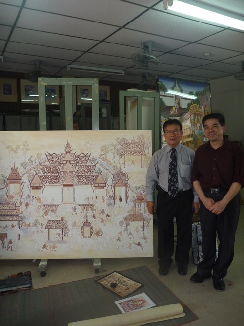 在泰国皇家理工大学领导的陪同下参观学生艺术作品展