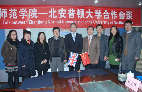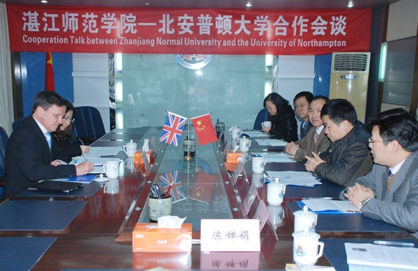 湛师新闻网3月3日讯 3月1日上午,我校在一号会议室举行湛江师范学院——北安普顿大学合作洽谈会。英国北安普顿大学常务副校长Ian Brooks博士;我校党委黄钢副书记,商学院王亚新院长,外国语学院孙卫东书记,国际交流与合作处邓逢光处长、郑志军副处长以及教务处陈俊群副处长等出席了座谈会。