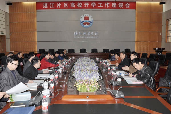 湛师新闻网3月2日讯 2月29日上午,由省教育厅组织召开的湛江片区高校开学工作座谈会在我校国际会议厅举行。省教育厅党组成员、副巡视员王玉学,后勤产业办公室主任朱俊文、就业指导中心主任黄兆团、安保处副处长王自成,广东医学院、广东海洋大学、湛江现代科技职业学院、广东海洋大学寸金学院等兄弟院校有关领导,以及我校领导梁英、刘海涛、李永全、李江凌及相关部门负责人出席了座谈会。