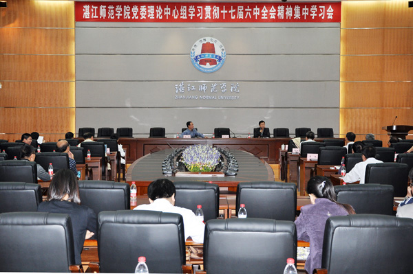 湛师新闻网11月11日讯 11月9日上午,我校党委理论学习中心组在国际会议厅举行以“学习贯彻党的十七届六中全会精神,积极推进校园文化建设”为主题的专题集中学习会。校领导梁英、刘海涛、黄钢、李永全、刘周堂、李江凌、邵乐喜,学校党委委员、中心组全体成员、党群部门正副职,二级学院党委(党总支)正副书记及全体辅导员参加了会议。会议由学校党委梁英书记主持。
