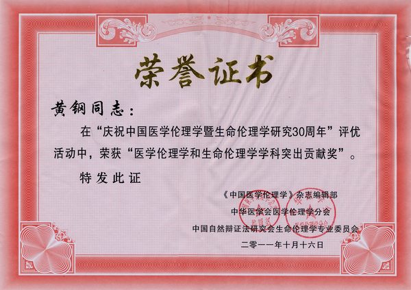 湛师新闻网10月24日讯 庆祝中国医学伦理学与生命伦理学研究30周年大会暨中国生命伦理学发展研讨会于10月16—17日在西安举行。会上,我校黄钢副书记荣获“医学伦理学和生命伦理学学科突出贡献奖”,此次获奖是对黄钢副书记在医学伦理学与生命伦理学方面的学术造诣和学术成就的高度认可和充分肯定。
